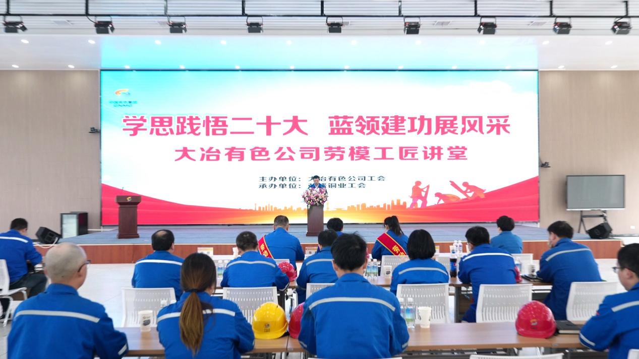 在深入開展學(xué)習(xí)貫徹習(xí)近平新時(shí)代中國特色社會(huì)主義思想主題教育之際,為團(tuán)結(jié)帶領(lǐng)廣大職工不斷掀起學(xué)習(xí)貫徹黨的二十大精神熱潮,大力弘揚(yáng)勞模精神、勞動(dòng)精神、工匠精神,勇當(dāng)推動(dòng)公司綠色高質(zhì)量發(fā)展的主力軍,4月27日,中國有色集團(tuán)出資企業(yè)大冶有色金屬集團(tuán)控股有限公司(簡稱:中色大冶)舉辦勞模工匠大講堂首場宣講會(huì)。