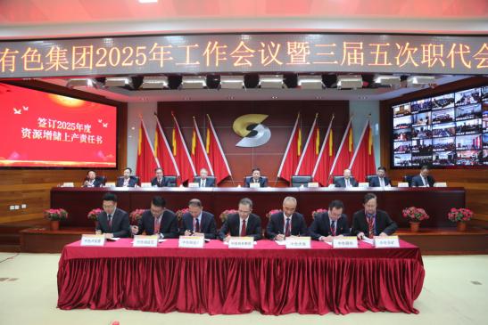 ??1月14日至15日,中國有色集團召開2025年工作會議暨三屆五次職工代表大會,全面貫徹黨的二十大和二十屆二中、三中全會精神以及中央經濟工作會議、中央企業負責人會議精神,總結2024年工作,研究部署2025年重點工作,加快高質量發展步伐。中國有色集團黨委書記、董事長文崗講話,黨委副書記、總經理張晉軍作工作報告,黨委委員、副總經理常青傳達了國資委中央企業負責人會議精神,黨委委員、副總經理王焱作安全環保工作報告。國家審計署企業審計三局局長張京奕出席會議并講話,集團公司外部董事張逢春、呂波出席會議。