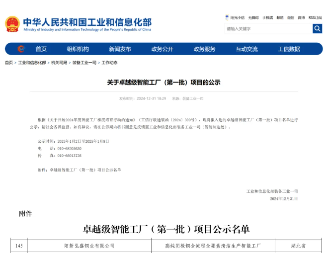 近日,工業和信息化部公示了卓越級智能工廠(第一批)項目名單。中國有色集團所屬企業弘盛銅業有限公司(以下簡稱“弘盛銅業”)成功入選工業和信息化部卓越級智能工廠。