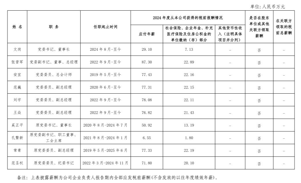 中國有色礦業集團有限公司企業負責人2024年度薪酬情況