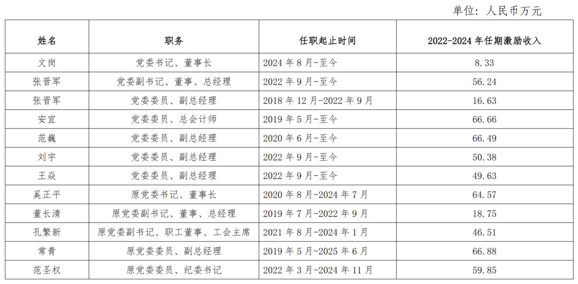 中國有色礦業集團有限公司企業負責人2022-2024年任期激勵收入情況